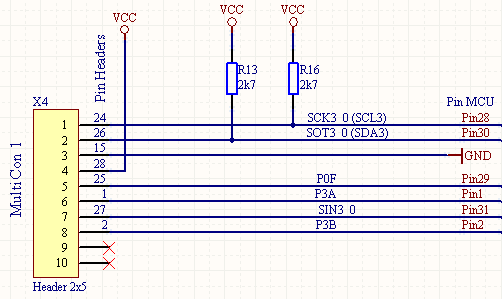 Pin X2/X3 Description 1 24 (X3) SCL or SPI Clock (MFS3_0) 2 26 (X3) SDA or SPI TX or UART TX (MFS3_0) 3 15 (X3) GND 4 28 (X3) VCC 5 25 (X3) P0F/NMIX/SUBOUT_0/CROUT_1/RTCCO_0 6 1 (X2) P3A/RTO00_0/TIOA0_1/AIN0_3/SUBOUT_2/RTCCO_2/INT03_0/SCK0_2 7 27 (X3) SPI RX or UART RX 8 2 (X2) P3B/RTO01_0/TIOA1_1/BIN0_3/SOT0_2/INT04_0/SCS31_2 9 NC 10 NC USB to Debug / UART