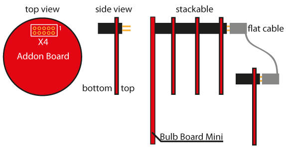 There are so many shields available for Arduino, so why is Bulb Board not compatible to Arduino shield boards?In general Arduino is a good concept and in the meanwhile became a standard for the embedded hobby market. Unfortunately the boards are very big and not in 2.54mm grid. Even if the connector would be the same, the software for Arduino shields boards must be ported and Arduino shields couldn't be used directly.